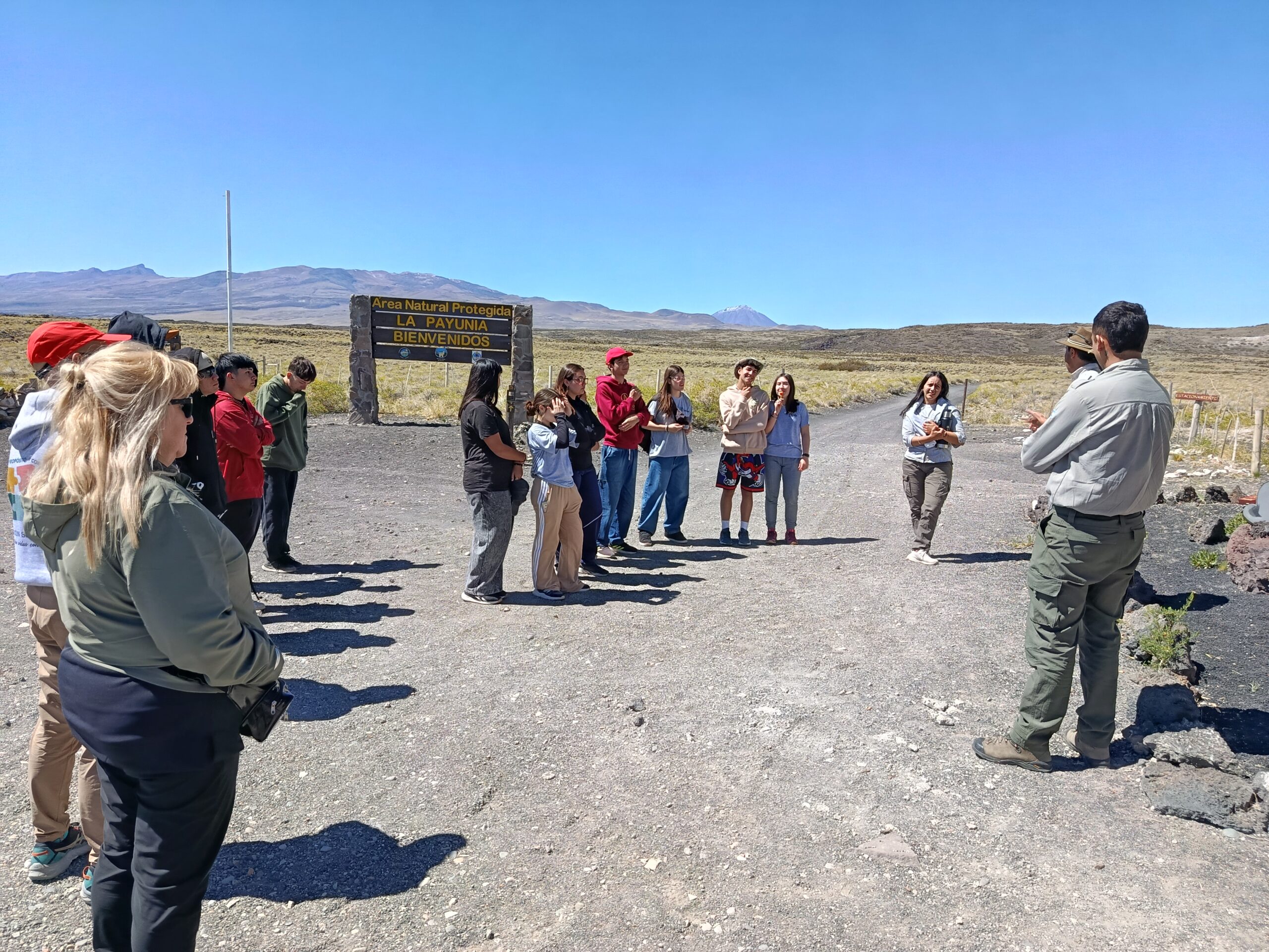 La jornada contó con la guiada de Valeria Chilaca, reconocida profesional del turismo local, quien compartió con el grupo su conocimiento sobre la geología, flora, fauna e historia de La Payunia. Ninguno de los jóvenes había visitado antes esta Área Natural Protegida, considerado uno de los campos volcánicos más extensos y mejor conservados del planeta. Durante el recorrido, los estudiantes pudieron observar los conos volcánicos y los campos de lava, además de comprender la importancia de su preservación.